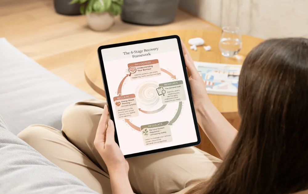 Most burnout advice asks you to do more: more self-care routines, more tracking, more optimization. This asks you to do less—without abandoning yourself.